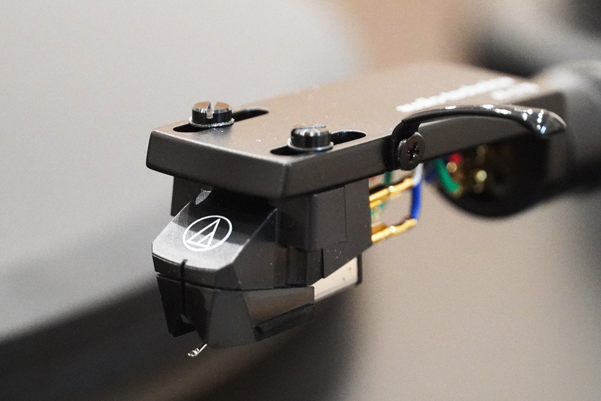 付属カートリッジは、接合の楕円針を持つ「AT-VM95E」のノブをブラックにした "BK" バージョンで、同社の非常にしっかりした新型ヘッドシェル「AT-LT10」にマウントされている。