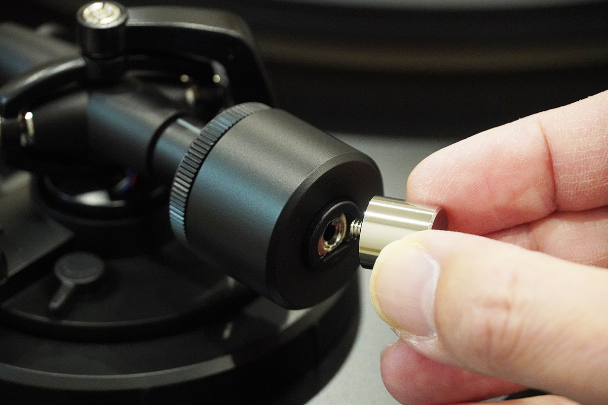 さらに、本アームには別売で重量級のサブウエイトが存在する。シェルおよびリード線込みで28.5gまで使えるようになるもので、こうなると例えば自重10.1gのAT33xシリーズに、重量級ヘッドシェルのAT-LH15HやAT-LH18Hも使えるようになる、ということである。他社カートリッジも、選択範囲は大いに広がることであろう。