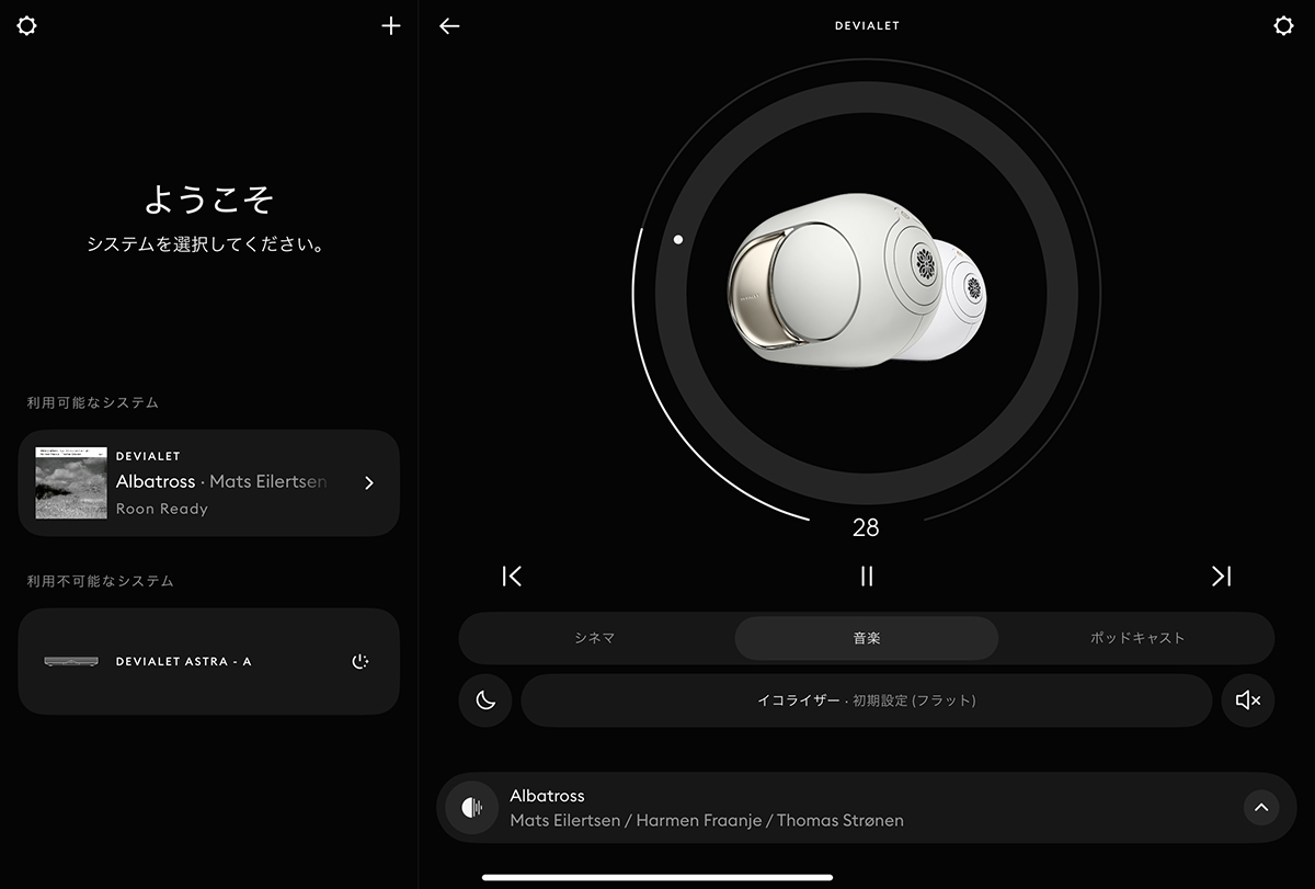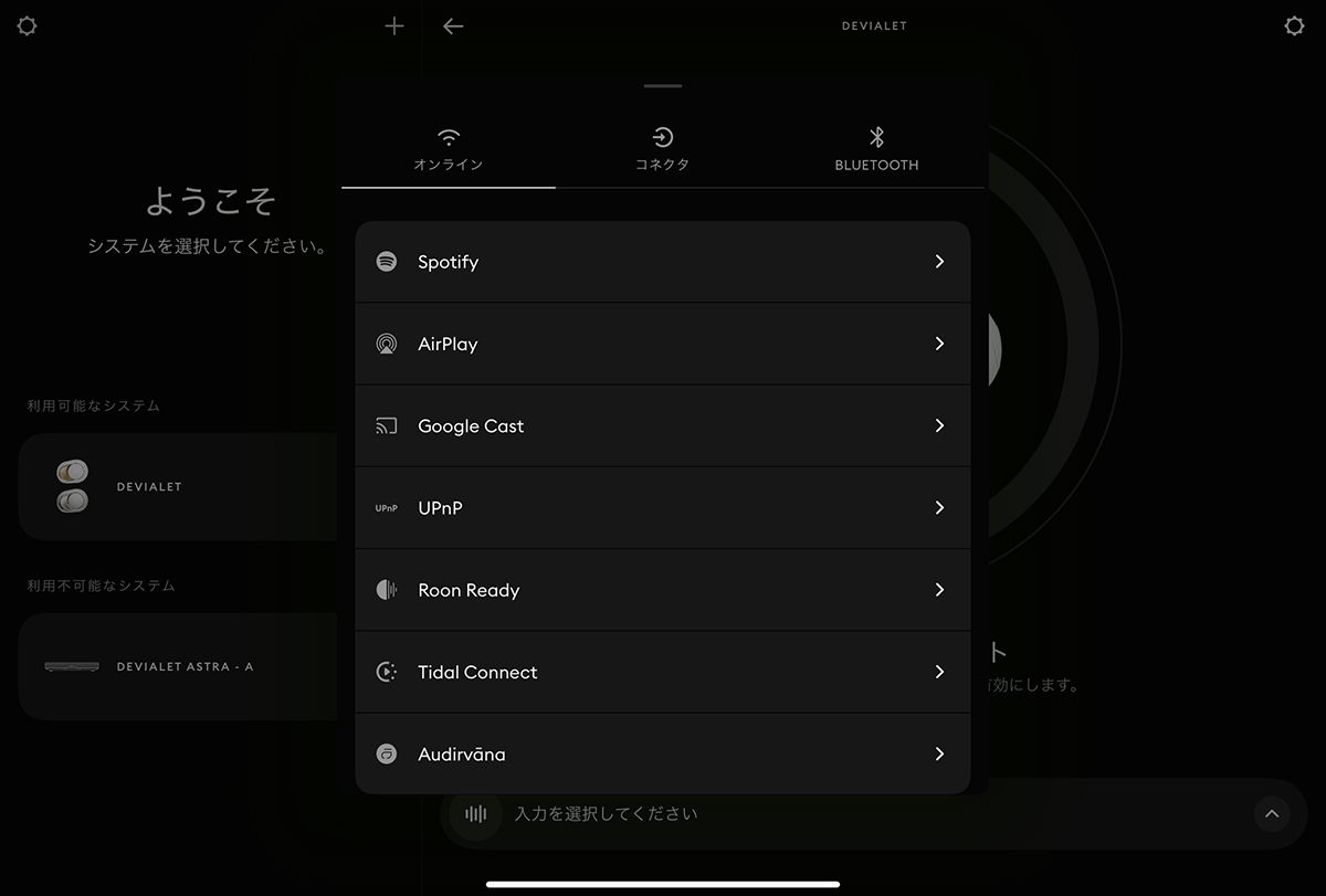 まず機能を説明しましょう。AirPlay、Google Cast、Spotify Connect、TIDAL Connect、Roon Ready、UPnP、Bluetooth 5.3に対応します。操作は専用の「Devialet」アプリが使えます。基本のセットアップはもちろん、楽曲選択も行えます。