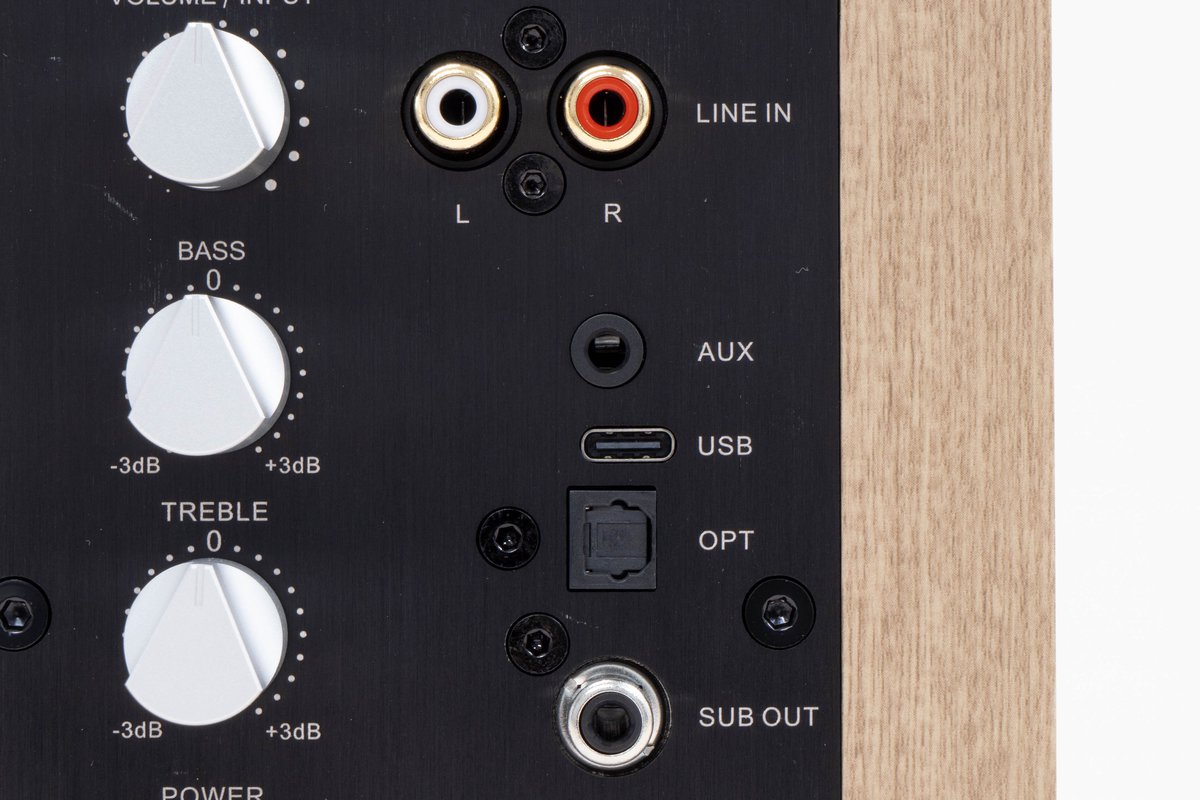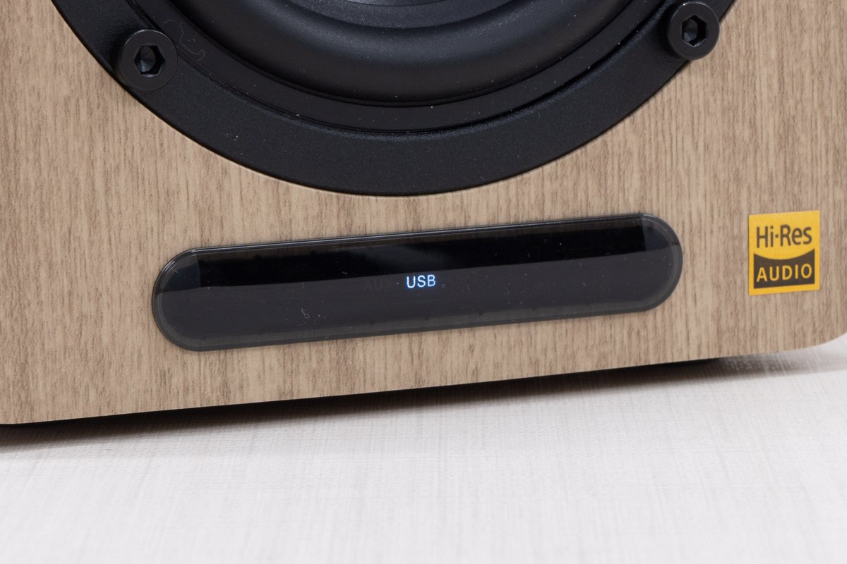 使い勝手の考慮も十分で、入力系統は必要十分な各種デジタル入力とアンバランス入力が揃っているほか、サブウーファー出力や、高音質なaptX HDコーデックにも対応したBluetooth入力も備える。また、高域と低域レベルの調整ツマミが装備されていることも、アクティブスピーカーならではの利便性と言える。