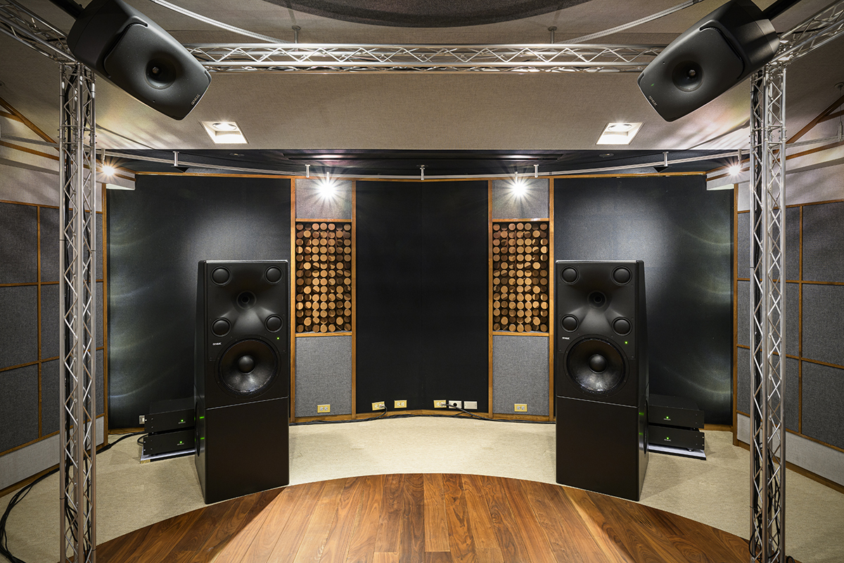 ミキシングコンソールの奥にそれはそびえ立つように鎮座していた。傍には片チャンネル当たり2台の外付けパワーアンプが合計4台積まれていた。スピーカーもアンプも真っ黒の無骨な仕上げ、飾りっ気は皆無だ。