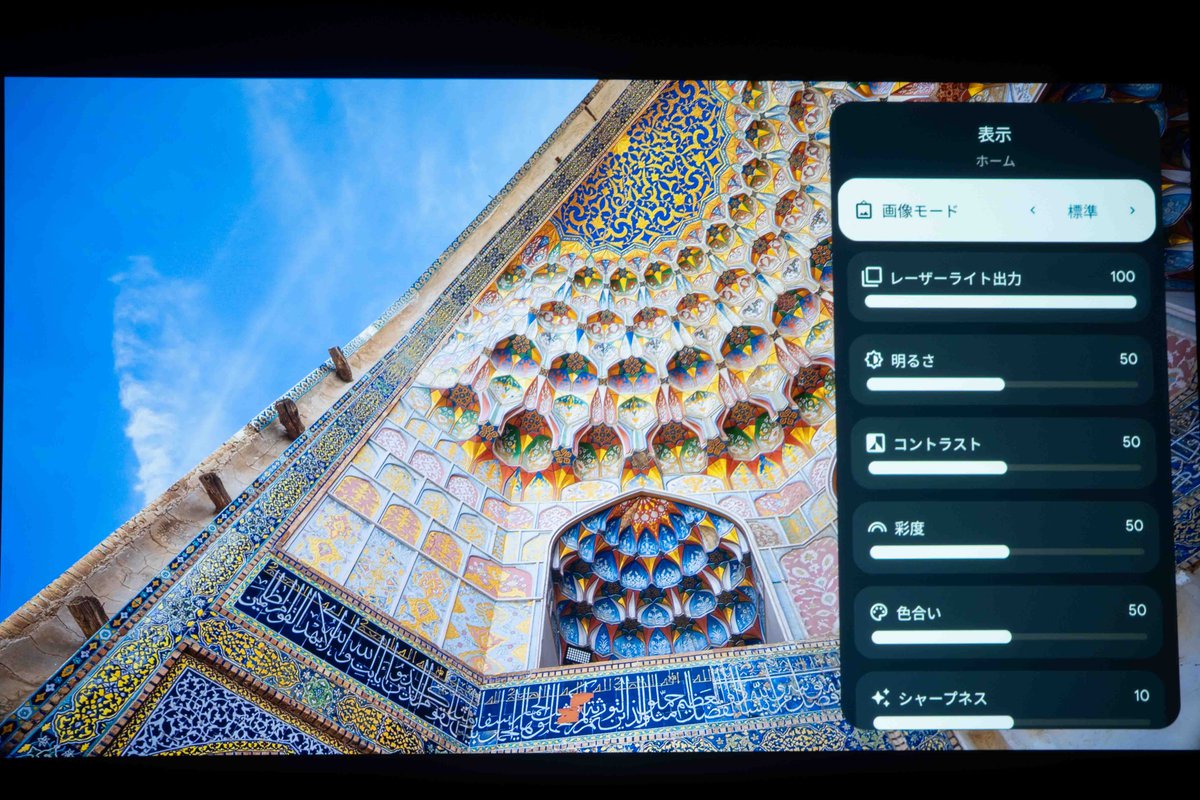 暗部はノイズが乗るとざわつきとして感じ易く、コントラストや色純度の低下に繋がるが、本機ではそうした傾向が非常に低く抑えられている。暗部諧調のスムーズさによる見通しの良さ、全体としての立体感も好ましい。手頃なモバイルプロジェクター、DLPプロジェクターと決定的に異なる部分と言える。