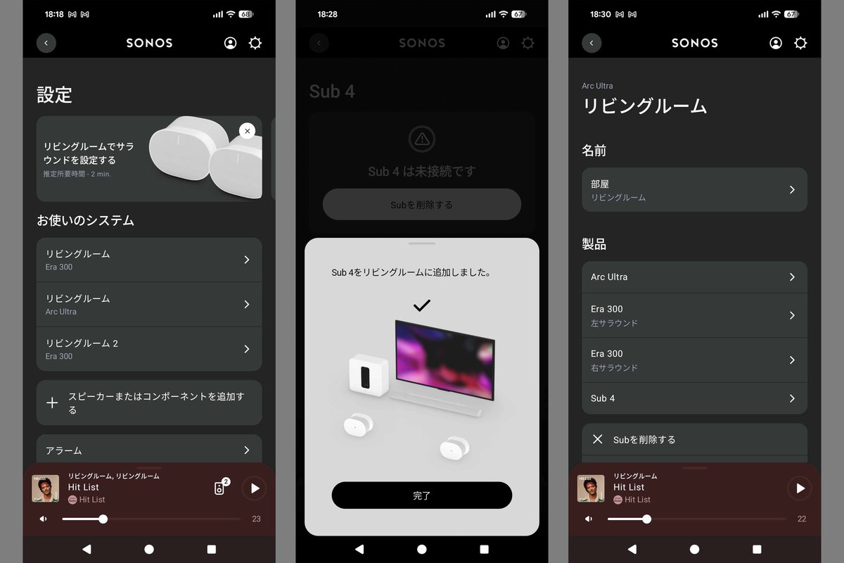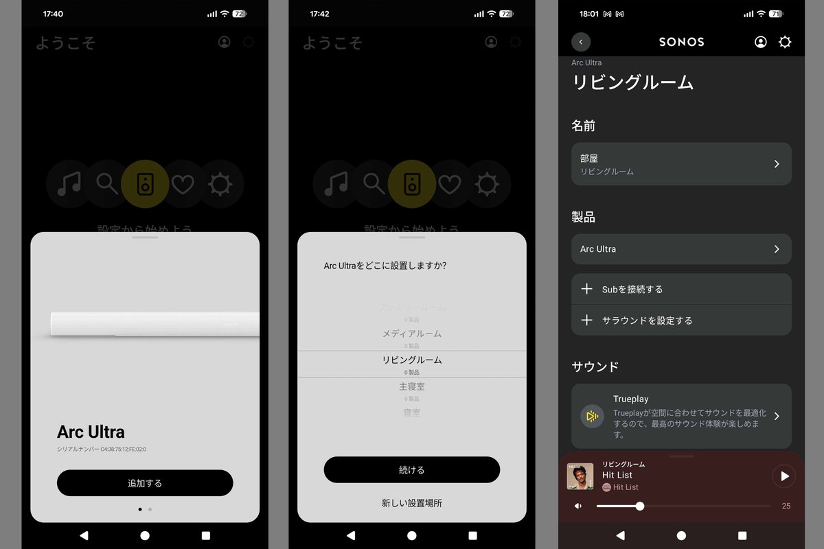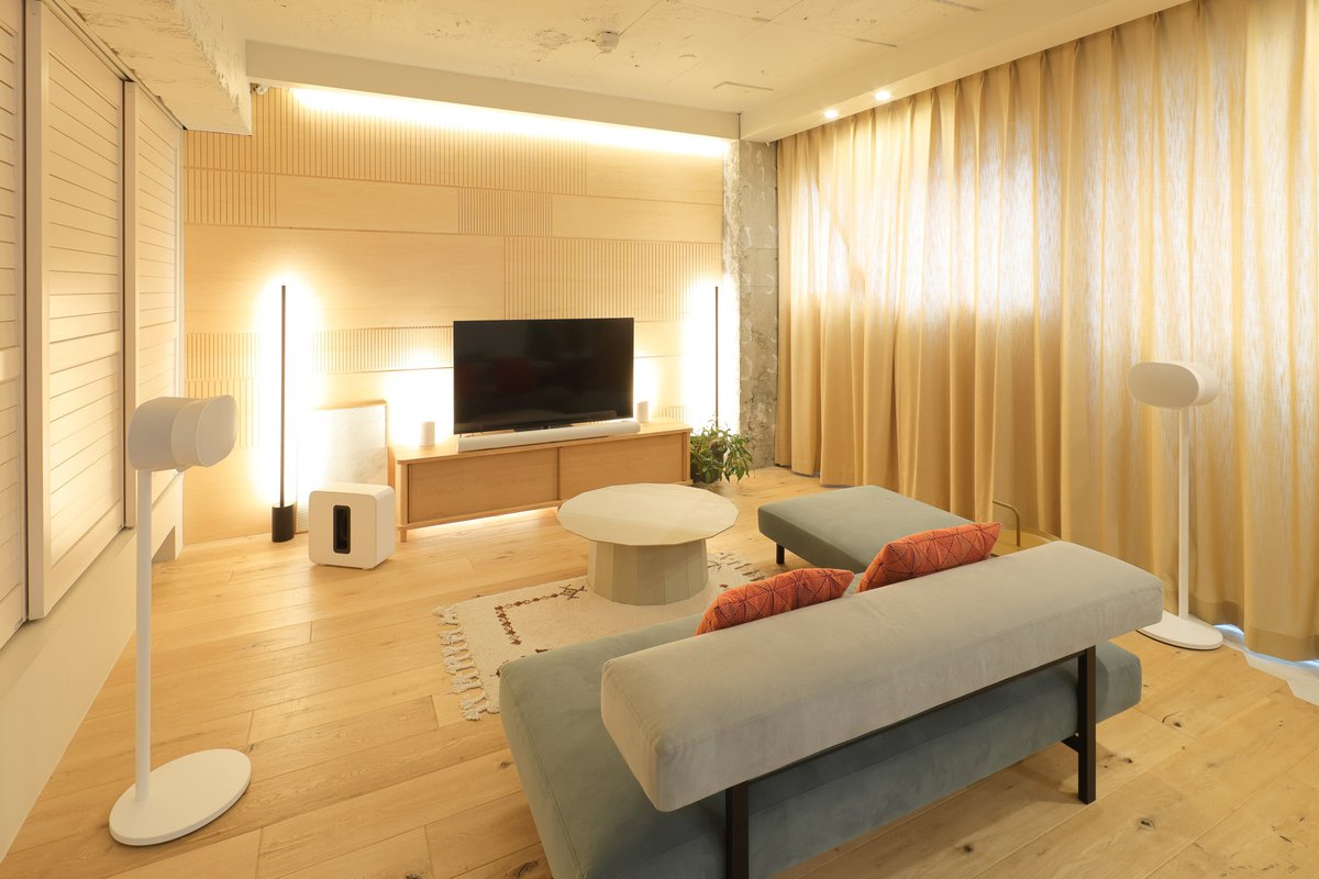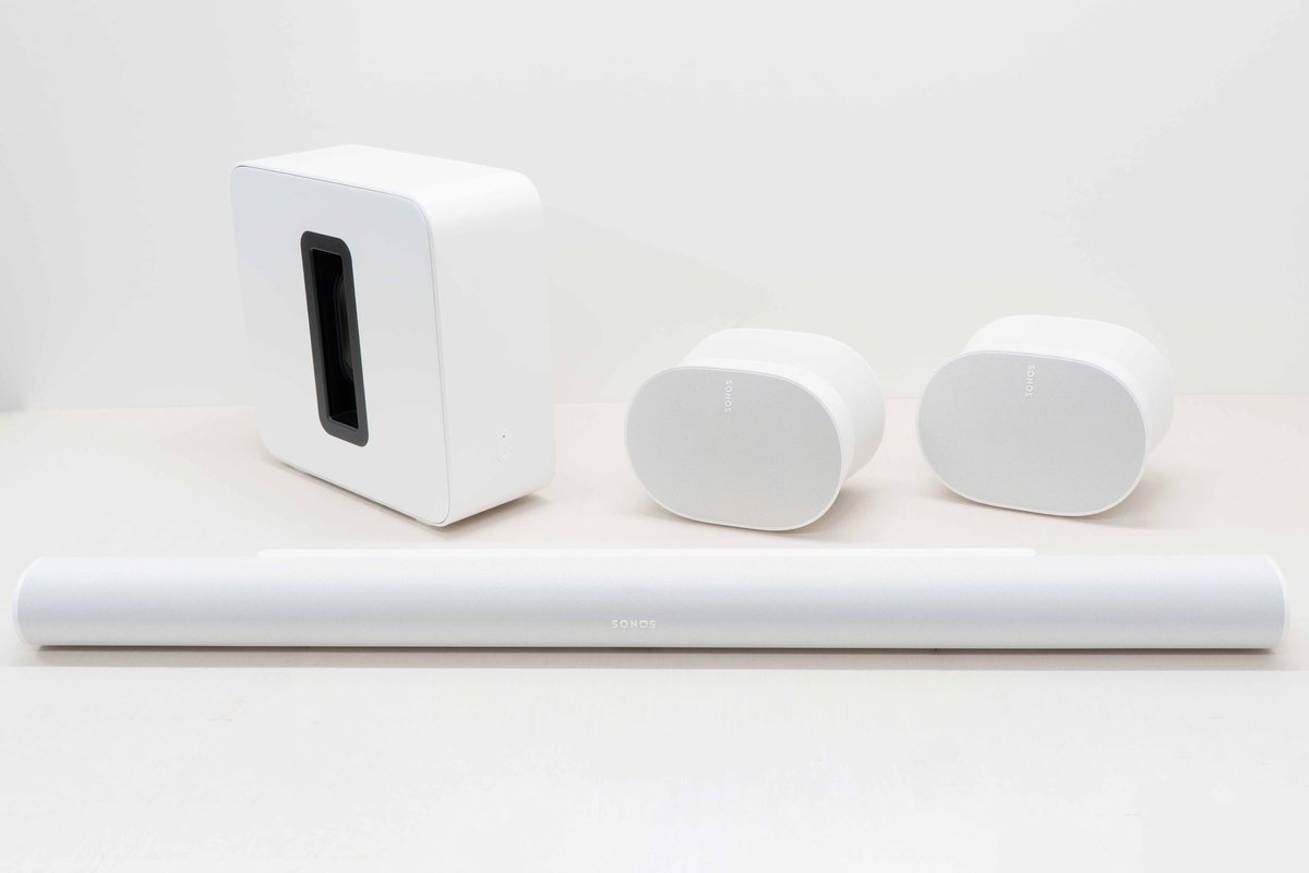 そこで本稿では、広めのリビングに導入してほしい「ハイエンドシステム」として、「Sonos Arc Ultra」(サウンドバー)+「Sonos Era 300」(サラウンド)+「Sonos Sub 4」(サブウーファー)を用意して試聴した。