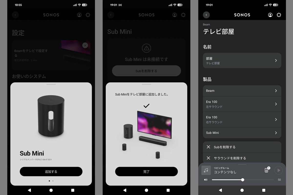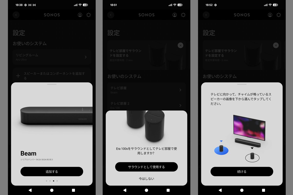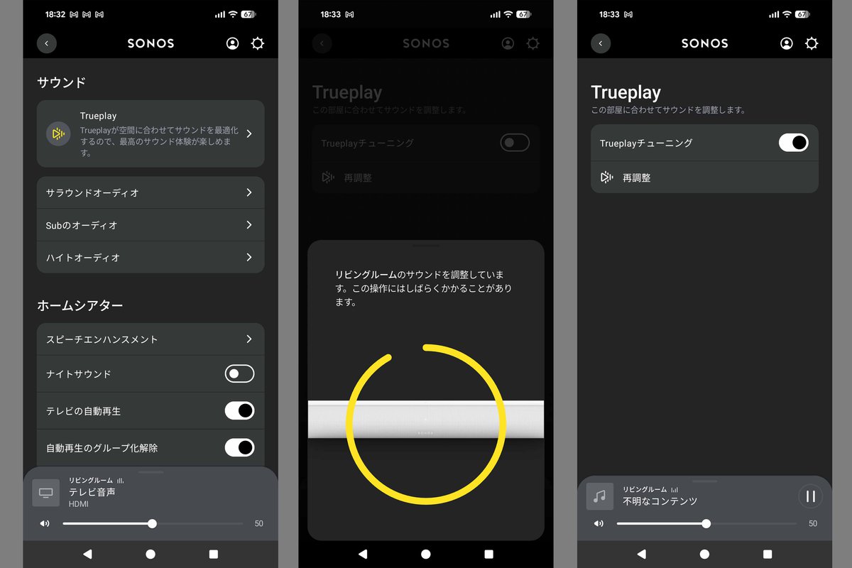予算やライフスタイルに合わせてどのモデルから始めてもよく、後で買い足してマルチルーム再生で使ったり、今回のレビューのように、ステレオからマルチチャンネルに発展させることもできる。より音質を追求したいならば、自動音場補正「Trueplay」で部屋に適したサウンドに整えたり、サウンドバーにはハイトチャンネルのレベル調整まである。