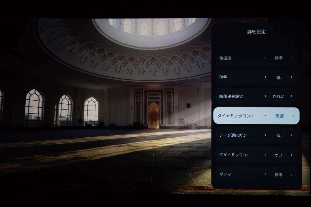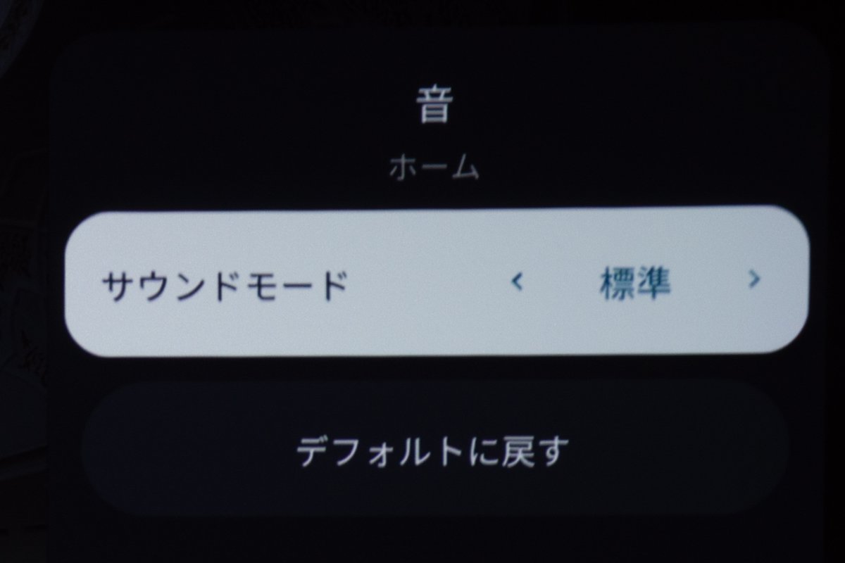 映像モードもチェックしてみると、デフォルトの「標準」モードは、HDR作品においても非常にバランスが良く、万能なキャラクター。一方で「シネマ」に切り替えると、色温度が抑えられ、映画のフィルムを思わせるマットで落ち着いたトーンへと変化する。コンテンツに応じて使い分けてみてほしい。
