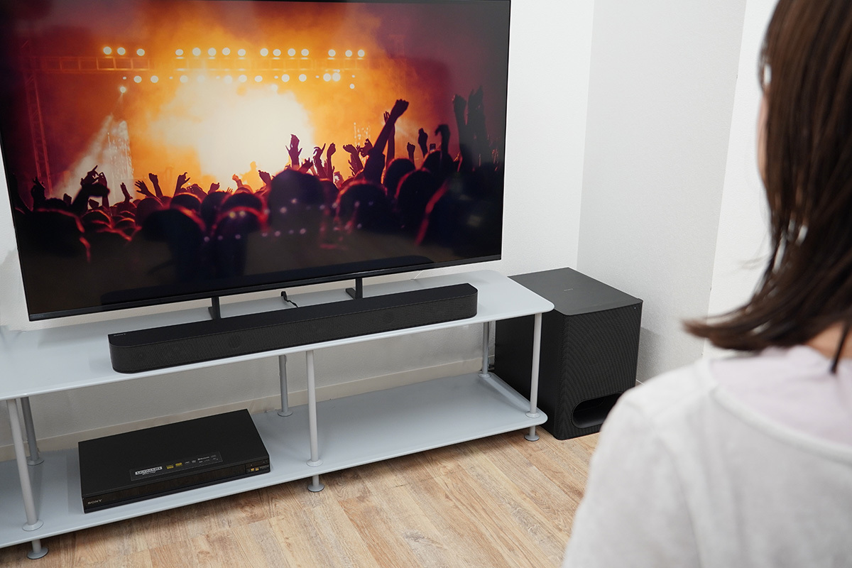 また、音楽番組やライブ動画など、音楽系のコンテンツを観たときに実感するのが、200mm口径ユニットを内蔵したサブウーファーによる低音の迫力。力強くズンズン響くので、ちょっとしたライブ会場っぽい雰囲気で楽しめるのが良い。