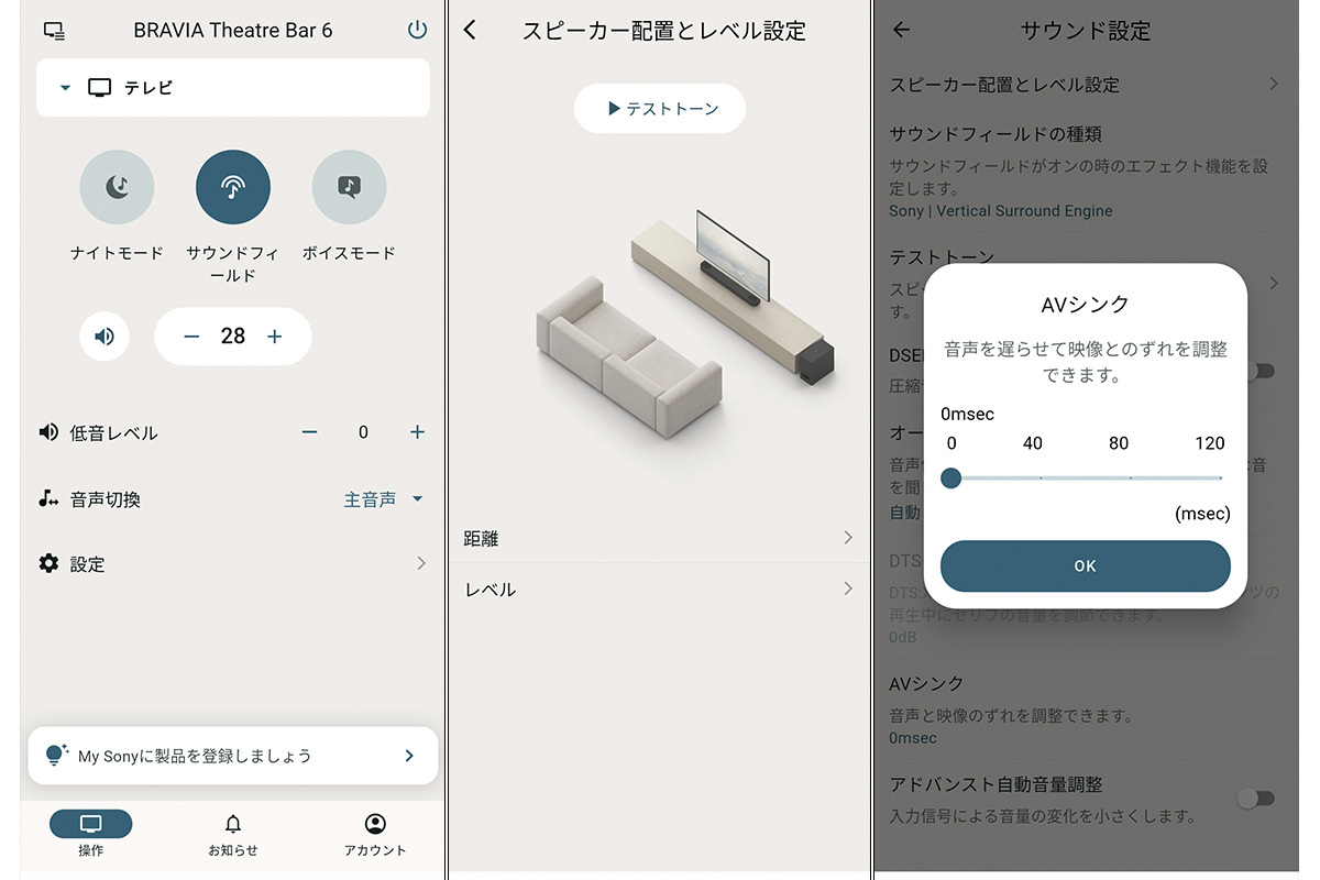 立体音響フォーマットはDolby Atmosに加え、Blu-rayなどで採用例の多いDTS:Xにも対応。操作はスマホ用アプリ「BRAVIA Connect」も利用できる。