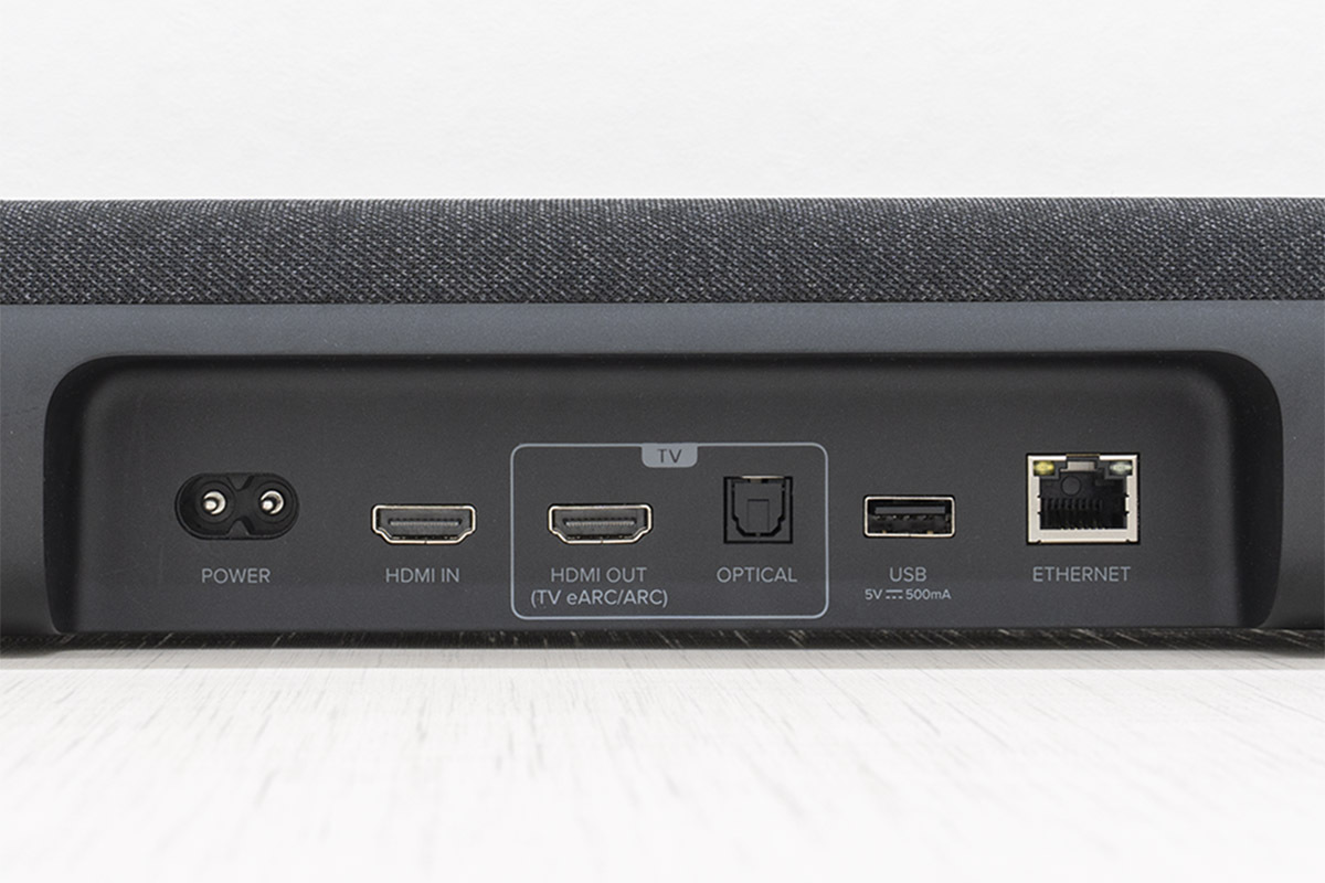 デザインについては過度な装飾のないスタンダードな仕様で、詳しいユニット構成は公開されておらず、サブウーファーユニットの搭載も不明。筐体上部に音を放出する開口部があるので、フロントスピーカーの音を上部へ反射させるギミック、もしくは天井に向けたスピーカーが取り付けられている可能性はある。