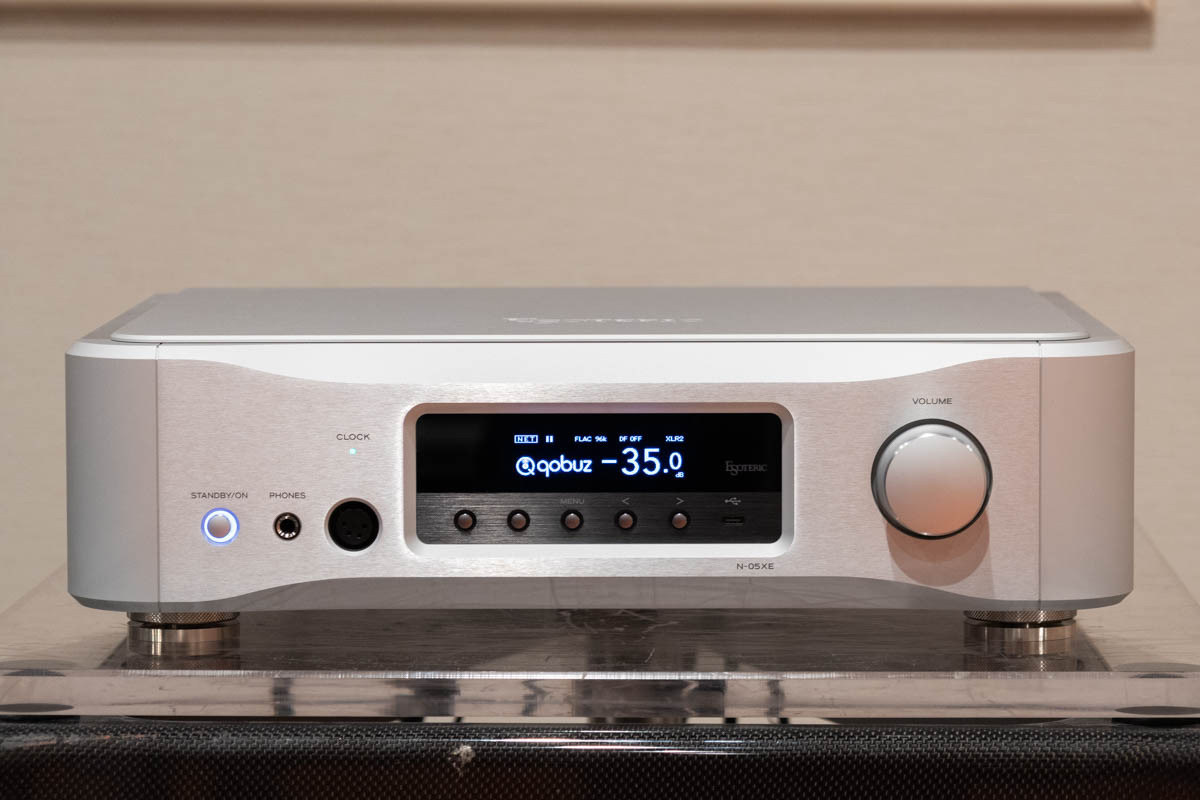 本機の試聴はエソテリックの試聴室にて、ネットワークプレーヤー&プリアンプとしてエソテリック「N-05XE」を組み合わせて行った。