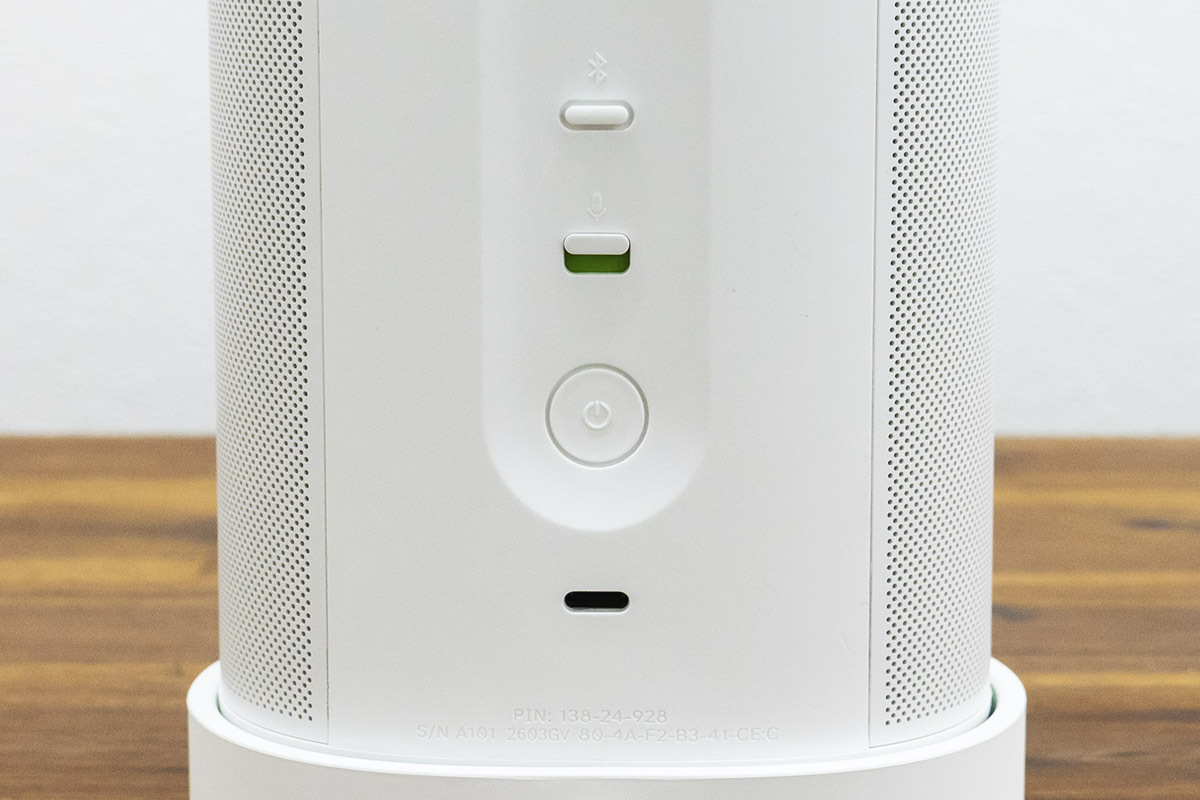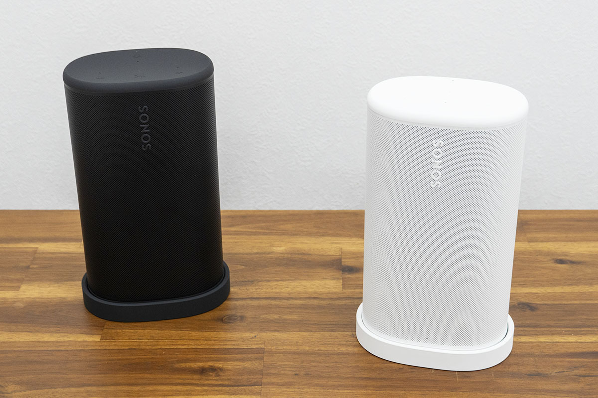112.5W×192.3H×76.7Dmmというボディサイズは、Sonosファミリーとしては小型の部類に入るが、一般的なBluetoothスピーカーとしては若干大きめのサイズ。凝縮されたボディは、ブラックとホワイトの2色展開で、ミニマルかつ洗練されたSonosらしい意匠。持ち上げると見た目以上にずっしりくる1.3kgという重量は、同ブランドがオーディオメーカーであることを改めて実感させる。