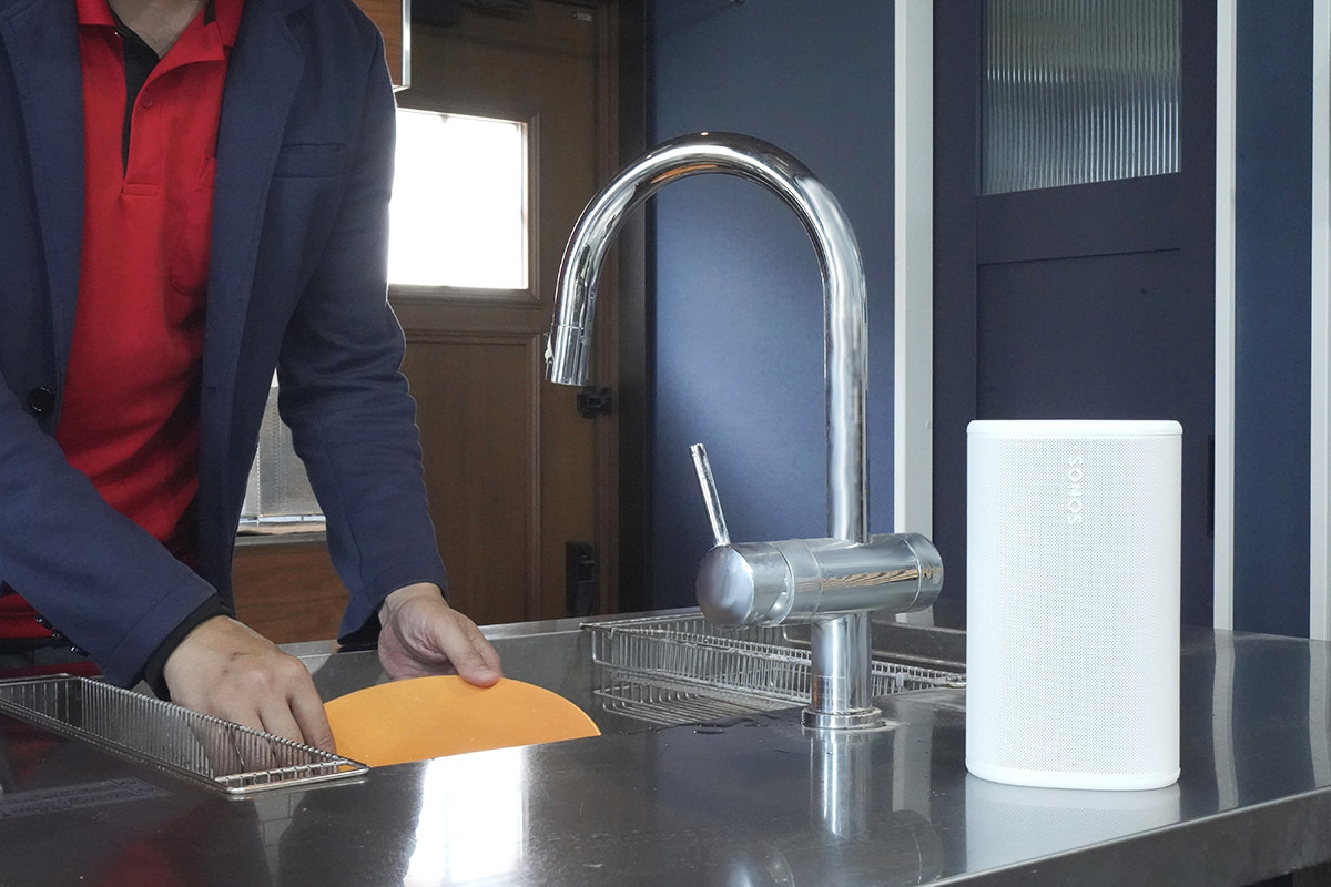 このSonos Playを実際に生活の中に組み込んでみると、その汎用性の高さに唸らされる。例えば、朝のキッチンで洗い物をしながらポッドキャストを聴き、午後はダイニングで読書をしながらゆったりとBGMを流す。IP67等級の防水防塵性能もあるため浴室でも使えるし、夏場であればアウトドアの水回りでも躊躇なく持ち出せるところもポイントだ。