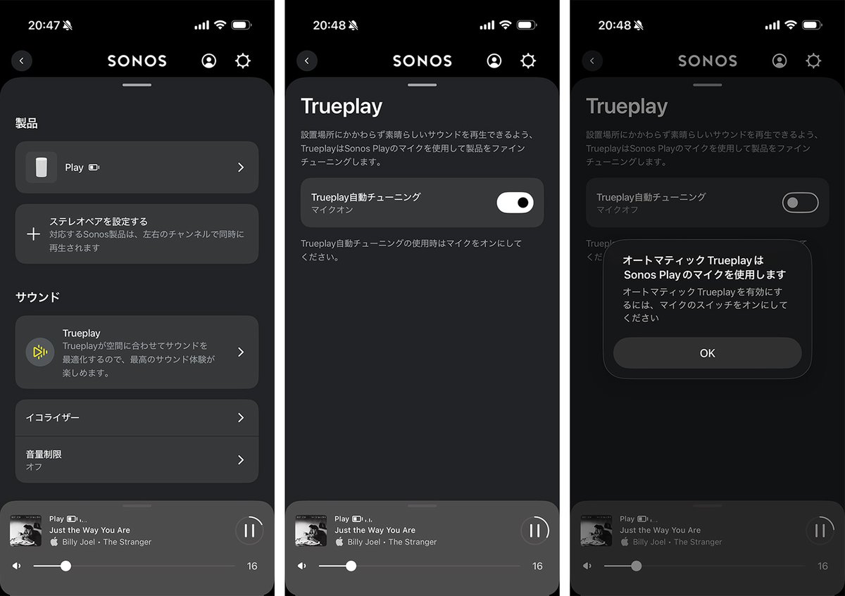 ポータブルスピーカーとしてのPlayの特徴は、自動音場補正機能の「オートマティックTrueplay」をオンにして使う時にいっそう際立つ。