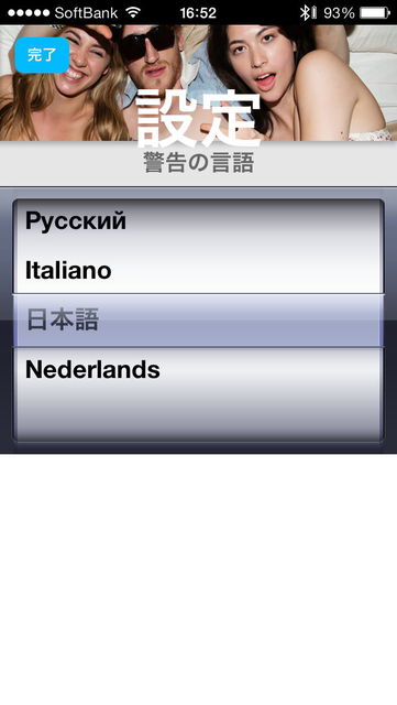 警告言語はもちろん日本語に設定することもできる
