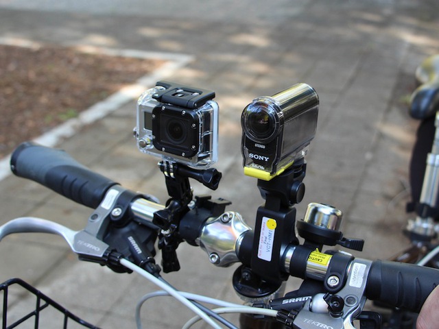 左奥に取り付けられているのが「Hero 3」。なるべく撮影条件を揃えるために、同じ自転車に同時に装着しての撮影も行った