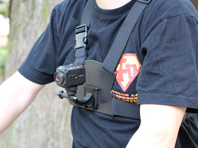“チェストマウントハーネス”「MT-CH001」を使って胸に装着しての撮影も行った
