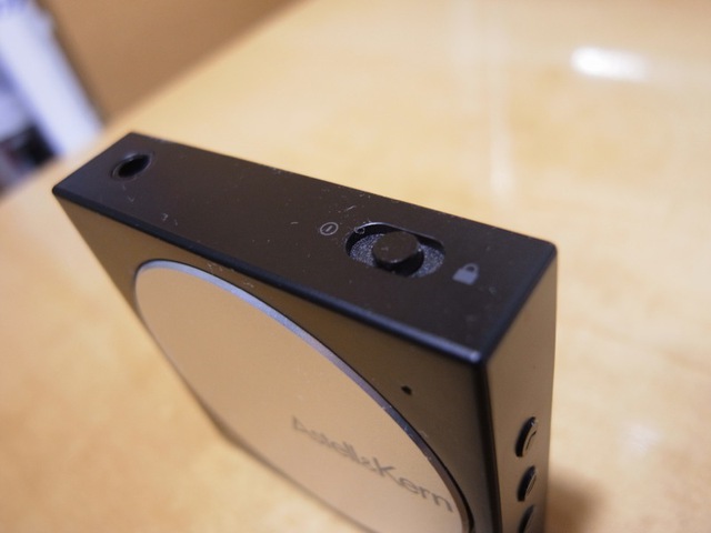 上面にはイヤホン端子(3.5mm)と電源/ロックスイッチ。ボリュームの誤動作が心配な場合はロック!