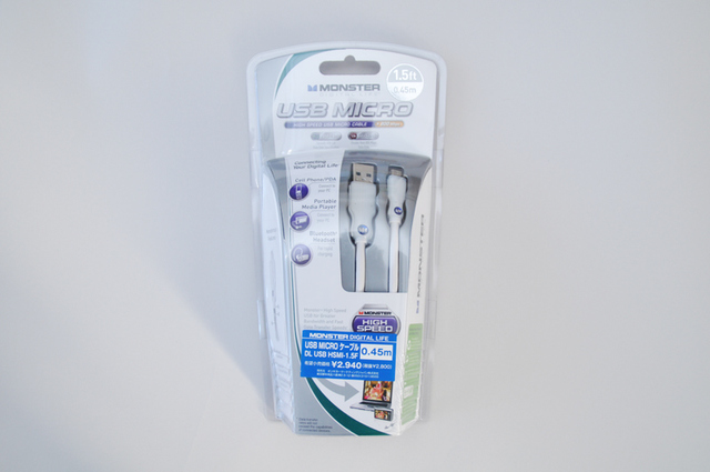 モンスターケーブルのmicroUSBケーブル「DLUSBHSMI」と聴き比べてみた。残念ながらこちらのケーブルも在庫僅少のモデルとなっている