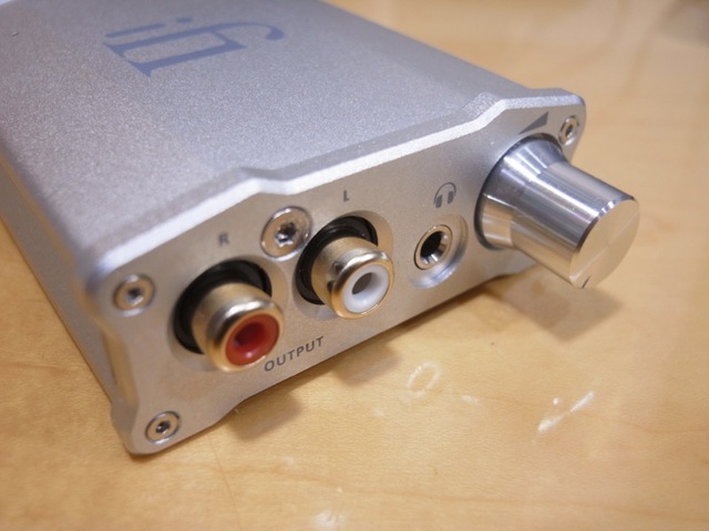 前面にはRCAライン出力端子、3.5mmヘッドホン端子、ボリュームが並ぶ
