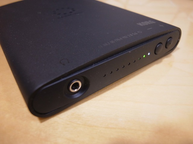 前面には3.5mmヘッドホン端子、音量とサンプリング周波数を示すランプ、ボリュームスイッチが並ぶ