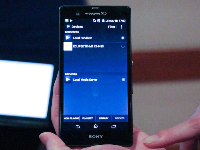 Android端末のUPnPアプリから、DLNAレンダラーとしてTD-M1を操作できることが、編集部の検証で確認できた