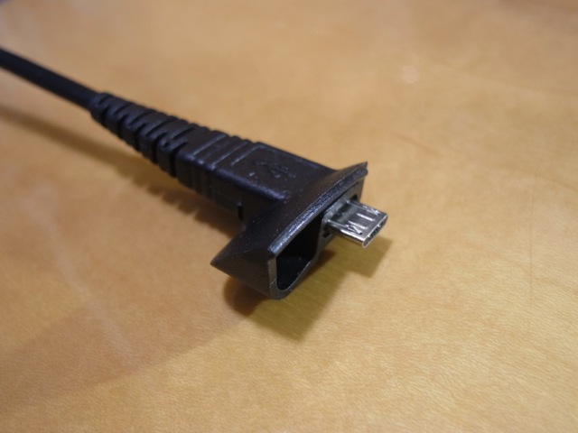 付属ケーブルの本機に接続する側はこのような形状となっており…