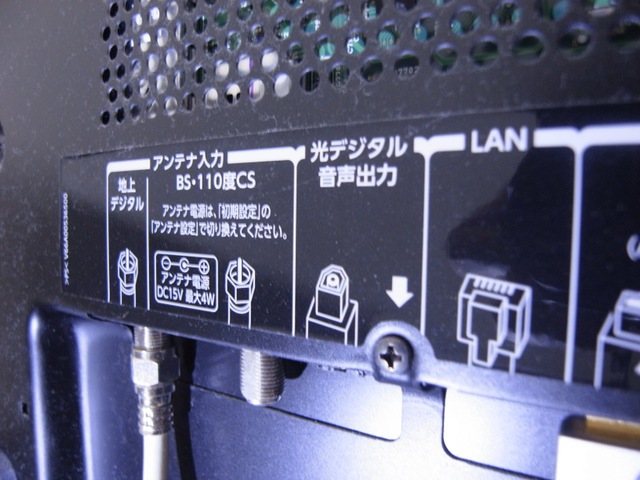 我が家のテレビ背面の光デジタル出力。なお光ケーブルは付属しないので別途に用意