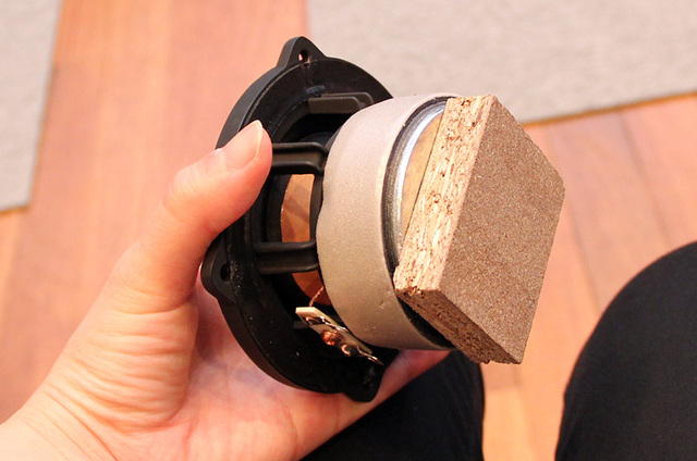 ウーファーの後部にはウッドブロックを装着しユニットの余分な振動を吸収