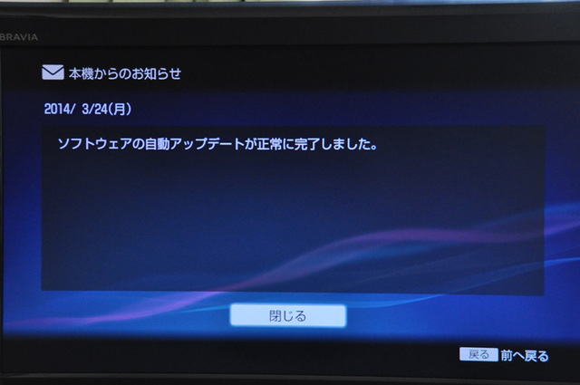 3月24日深夜に自動でファームウェアのアップデートが行われていた