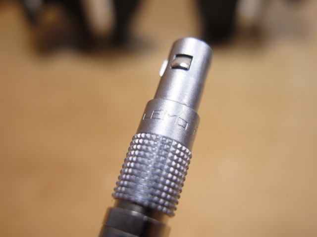 LEMO端子のうちどの型番かまでは判別できないが、細身で美しい端子だ