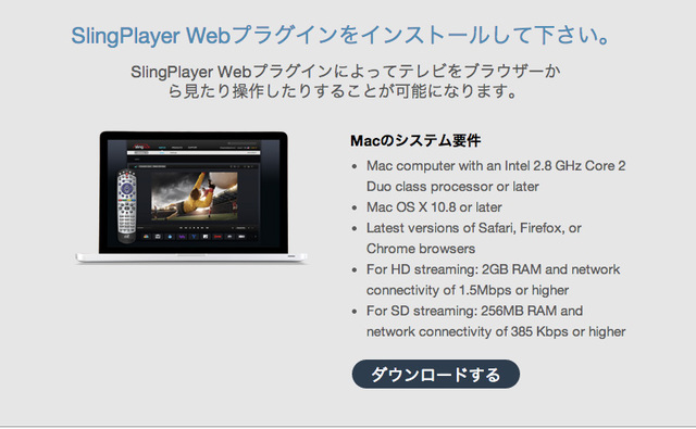 PCからSlingboxのユーザーアカウントを登録後、ブラウザ用のプレーヤープラグインをインストールする
