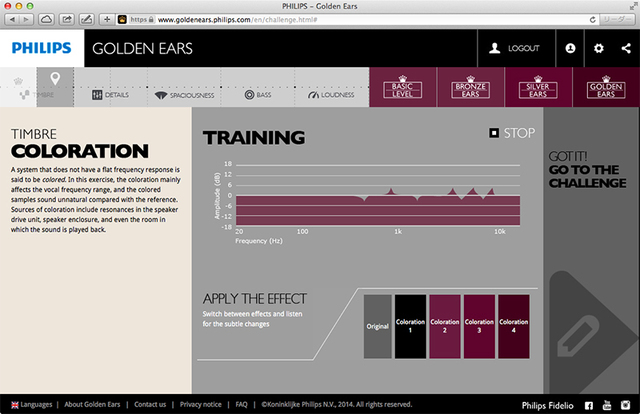 トレーニング。オリジナルの音源と、それに2種類とその各強弱の計4パターンのイコライジングを聴き分ける