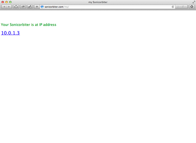 http://sonicorbiter.com/my/にアクセスすると画面にIPアドレスの数列が表示されるので、それをクリック