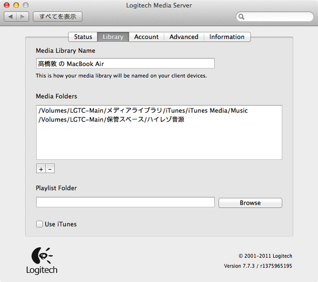 Macの場合LMSの設定はシステム環境設定から行う。「Library」タブの「Media Folders」が大切!