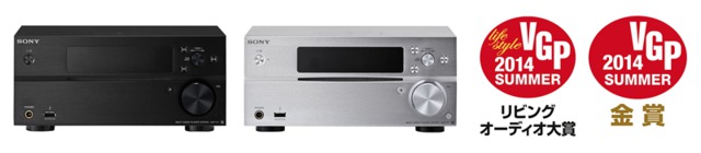 ソニーのハイレゾ対応マルチオーディオプレーヤーシステム「MAP-S1」¥OPEN(予想実売価格7万円前後)。本体色はブラックとシルバーの2色を用意する。MAP-S1は「VGP 2014 SUMMER」において「リビングオーディオ大賞」を受賞。MAP-S1とスピーカー「SS-HW1」の組み合わせは、「VGP 2014 SUMMER」システムオーディオ/ハイコンポ ハイクラス(10万円以上)部門において金賞を受賞した