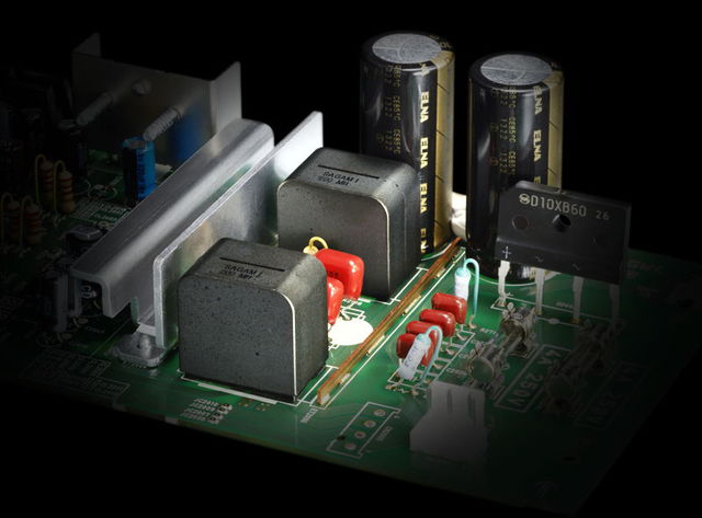 大型のコンデンサーなど、高級パーツをふんだんに搭載した