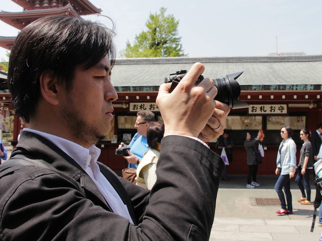 PANASONIC「DMC-GH4」で撮影を行っているところ。レンズの手動ズームの使い方に難しさを感じるところがあったという。