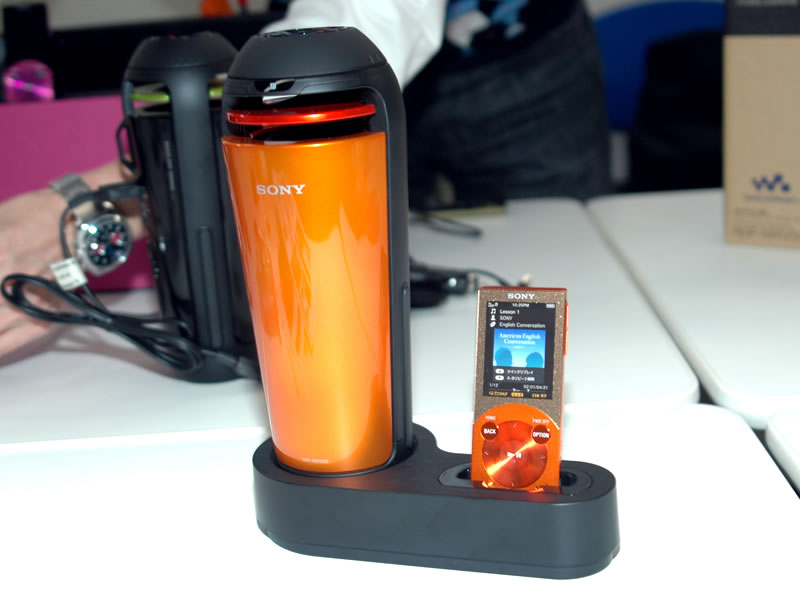 ホームステーションにスピーカーとウォークマンを設置した状態