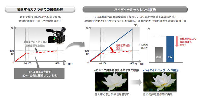 HOME > レビュー > レビュー記事一覧 【特別企画】「プレミアム4K」アピールの根拠とは? 東芝「4Kレグザ Z9X」の高画質化ポイントを徹底解説 折原一也 2014年06月09日 前の写真へ ハイダイナミックレンジ復元では、撮影時に圧縮された高輝度情報を高度に判断 前の写真へ この写真の記事へ 関連リンク 東芝 レグザ公式ページ