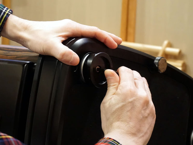 スピーカー本来の脚部を取り外し、そのスパイク穴を利用してアタッチメント「WB-60/AT」を取り付け。そしてWB-60の上に載せることでセッティングは完了