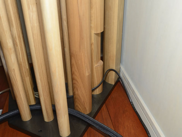 〈コーナーアンク〉を設置時にはコーナーに電源コンセントがあったため、電源ケーブルを美しく通せるように木柱の一部を特別に加工(現在は電源コンセントを正面に移動させている)