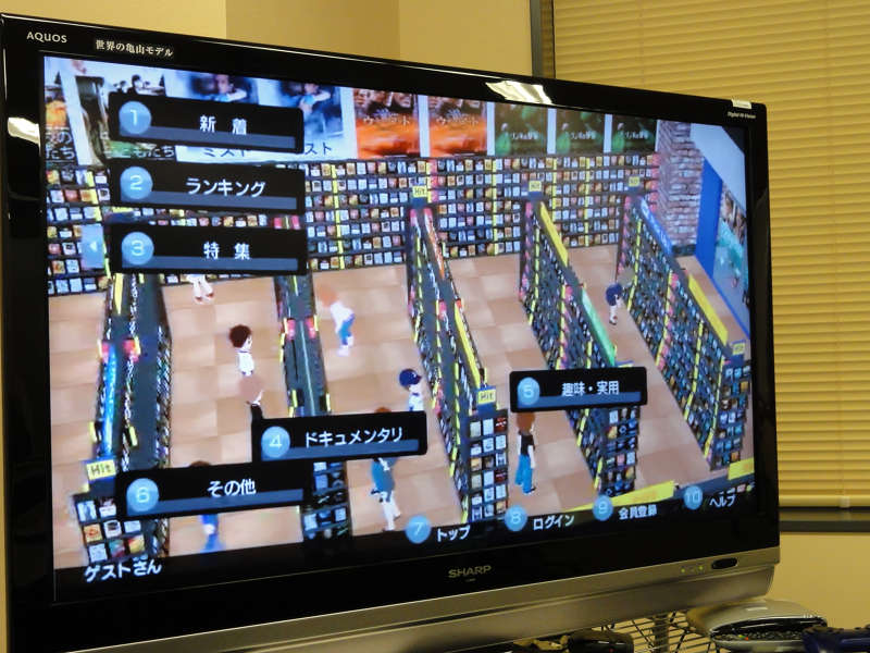 アバターを使ってバーチャルなレンタル店で品定めができる。ただ、ゲームのキャラクターのようにアバターを操作するわけではなく、作品の検索などは数字や十時キーでタイトルジャンルを選んで行う。