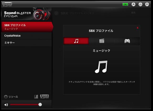PC用「Sound Blaster EVO コントロールパネル」のUI