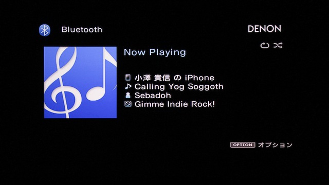 Bluetooth再生時のGUI。スマートフォンの音源を気軽に楽しめるので非常に便利