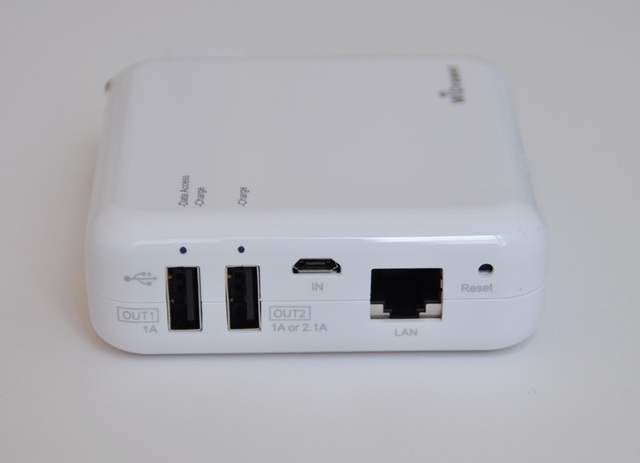 USBストレージの接続、モバイル端末の充電に使用するUSBポートのほか、LANポート、本体の充電に使うmicroUSBポートなどが揃う