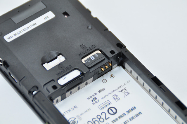 microSIMカード(miniUIM)のスロットとmicroSDカードスロットを搭載している