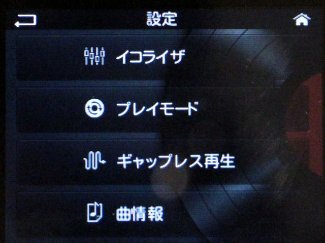 設定画面。プレイモードやギャップレス再生などの設定が行える