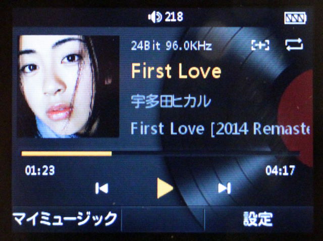 楽曲再生時の表示画面。サンプリングレートや量子化ビット数も表示される仕様だ