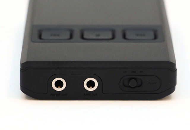 本体底部にイヤホン/ヘッドホン出力とライン出力端子を装備する