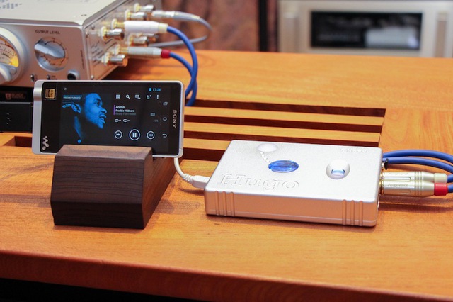 ハイレゾ対応Walkmanのフラグシップモデル「NW-ZX1」とHugoをデジタル接続してハイレゾ再生しているところ