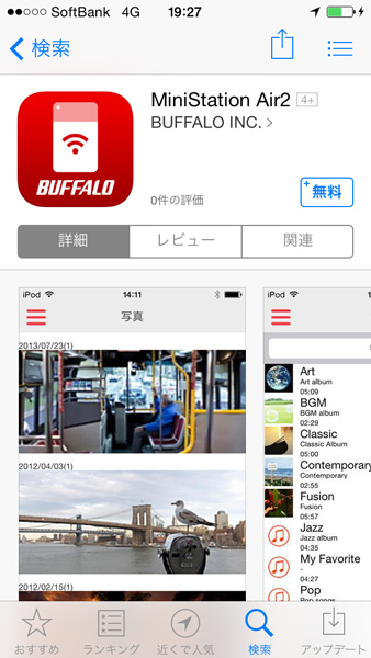 バッファローの「MiniStation Air2」アプリはAppStore、Google Playストアから無料でダウンロードができる